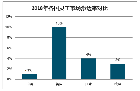 1、靈工市場(chǎng)滲透率低且分散度高,亟待龍頭崛起